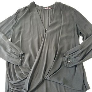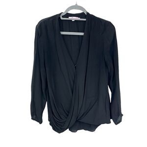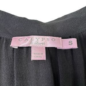 Calypso St. Barth Ruth Black Surplice Silk Blouse, Size Small