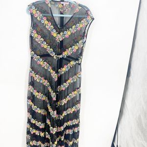 Sheer Overlay Dress with Floral Embroidery