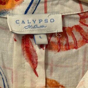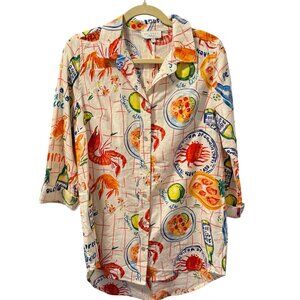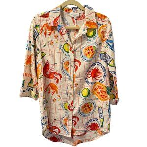 Calypso St. Barth Seafood Print Button-Up Shirt Sz L Linen & Rayon