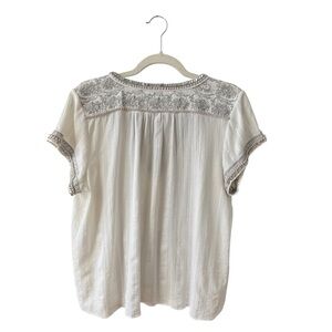 Calypso St. Barth Sequined Crochet Embroidered Blouse Top Size Lg White Gray Boho Boxy Work