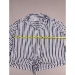 Calypso St Barth Striped Linen Blend Button Front Tie Hem Top Blouse Small