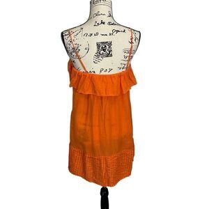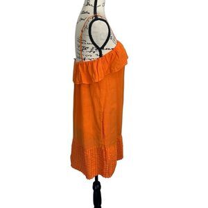 Calypso St. Barth Summer Linen Orange Ruffle Dress, O