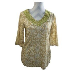Calypso St. Barth Target 3/4 Sleeve Embroidered Top