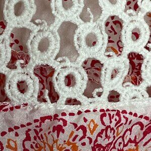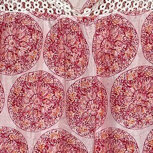 Luxurious and chic Calypso St Barth Women's Puff Sleeve Silk Blouse in small size. This boho-style top showcases a captivating blend of pink and cream hues, ideal for women seeking a stylish statement.