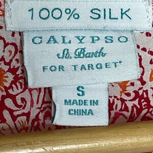 Calypso St Barth Top Womens Small Silk Shirt Blouse Puff Sleeve Casual Pink