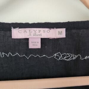 Calypso St Barth Women's Black 100% Linen Beaded Tunic Top Coverup Size Medium