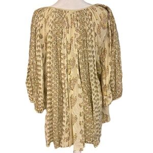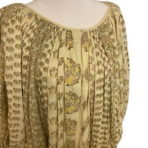 Calypso St. Barth Womens Cream Button Up Balloon Sleeve Floral Blouse Sz 1 XL