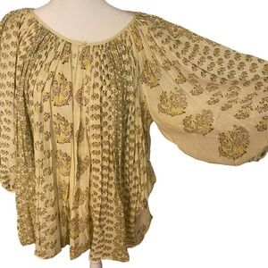 Calypso St. Barth Womens Cream Button-Up Balloon Sleeve Floral Blouse Sz 1 XL