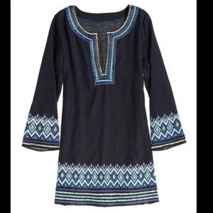 Calypso St Barth Womens Navy Linen Resort Embroidered Tunic Blouse Dress Size M