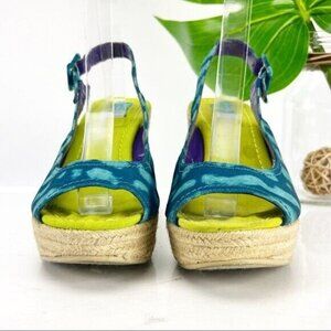 Calypso St. Barth Women's Sandal Size 8 Teal Blue Slingback Espadrille Wedge
