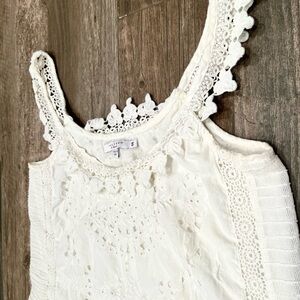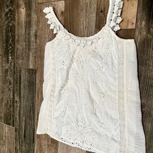 Calypso St Barth Womens White Linen Eyelet Embroidered Tank top
