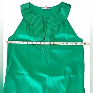 Effortlessly stylish and feminine, this Calypso St. Barth mini dress is the perfect piece for warm weather or vacation wear. Made from lightweight, 100% silk, this sleeveless A-line dress features a vibrant emerald green hue, subtle stitched details, and a flattering V-neckline. With a breezy shift silhouette and two hidden side pockets, it blends boho charm with everyday comfort.