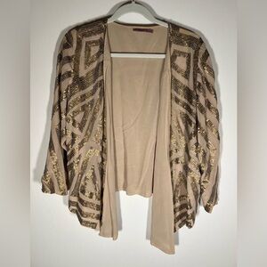 Calypso St. Barth beige gold sequin embroidered chevron silk open cardigan sz L