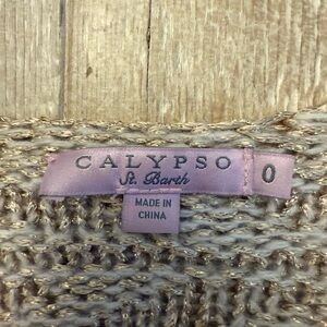 Calypso St Barth cardigan cashmere gold metallic fur cuffs M (size reads 0 but fits like a medium)