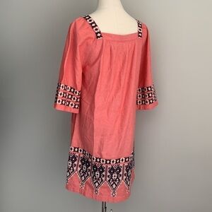 Calypso St. Barth embroidered square neck shift dress pockets pink blue size xs
