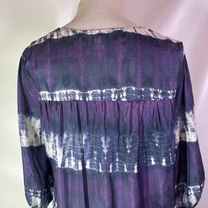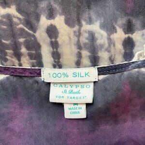 Calypso St. Barth for Target Size M Silk Tie Dye Blouse Lace 3/4 Sleeves Boho