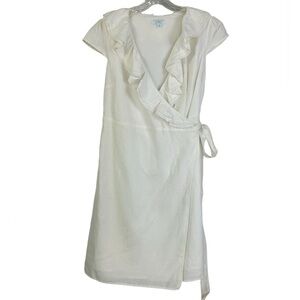 Calypso St. Barth for Target Womens SZ S White Linen Ruffle Wrap Dress Romantic