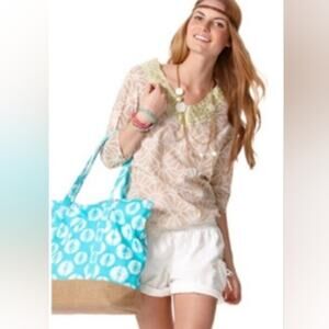 100% cotton v-neck top with embroidery. 3/4 sleeves. Good preworn condition.