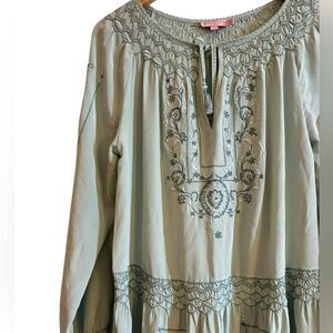 Calypso St. Barth Dadra Sage Silk Green Embroidered Elegant Embroidered Dress S
