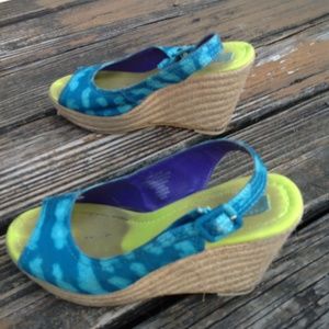 Calypso Target Wedge Sling Back Peep Toe Heels 7.5 Womens Sandals Shoes