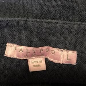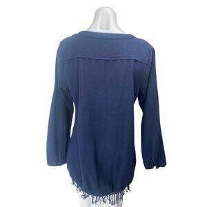 Calypso Women's Blue Long Sleeve Fringe Button V-neck Tunic Blouse Top Size L