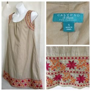 Calypso for Target Womens Dress Sz S Floral Embroidered Toupe/Pink Sheath A-Line