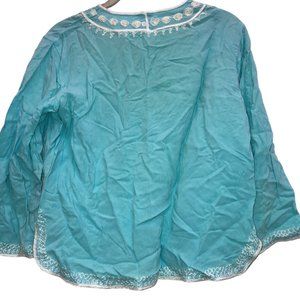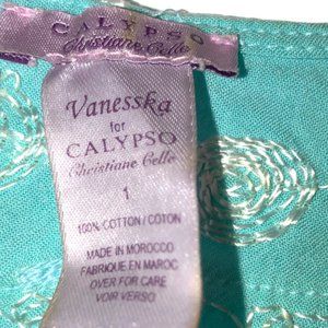 Calypso st Barth Vanesska turquoise white embroidered Ukrainian tunic top S 1
