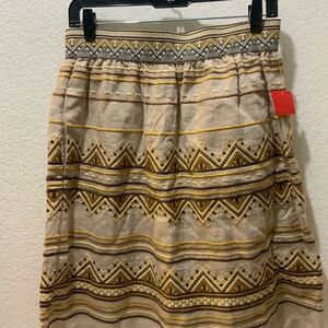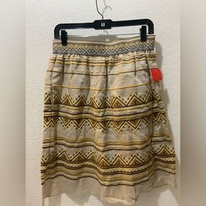 Calypso St. Bart Bohemian Linen Patterned Tan/Brown Pull On Mini Skirt Sz XS