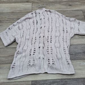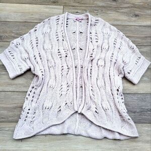Open, draping , Intricate pointelle lace open knit short sleeve cardigan