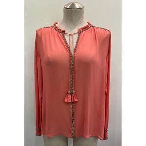 Calypso St. Barths Silk Beaded Blouse in Salmon Pink Size XS
