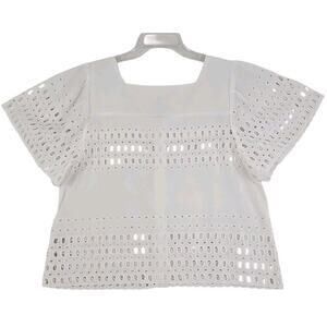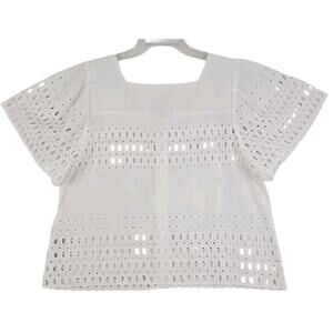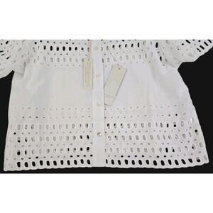 Calypso~Woman Size S~White 100 % Cotton Button-Up Shirt Blouse Shirt Sleeve NWT.