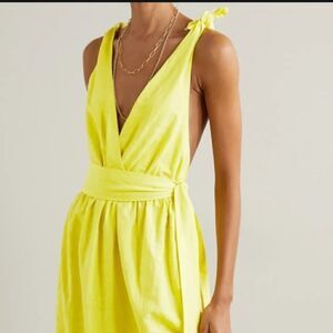 NWOT Calypso XS Christiane Geller Linen Dress, Halter adjustable straps, hidden pockets, open back, elastic back on the waist. 36” Bust, 40” or longer due to adjustable halter. Stock pics show a similar but not exact style as my item.