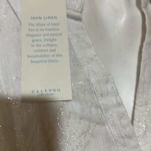 “Calyspo St. Barth 100% Linen Shirt – White Leaf Pattern w/ Lurex, NWT, Size Medium
