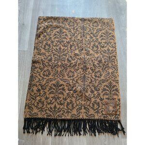 Calzeat Of Scotland Vintage Wool Brown & Black Damask Throw Blanket 46"x56"