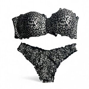 Calzedonia Black Bikini with Silver Metallic Pattern – Top & Bottom MED
