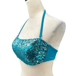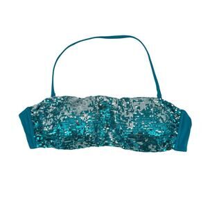 Calzedonia Sz 38 Cobey Teal Blue Sequin Bandeau Swimsuit Bikini Top
