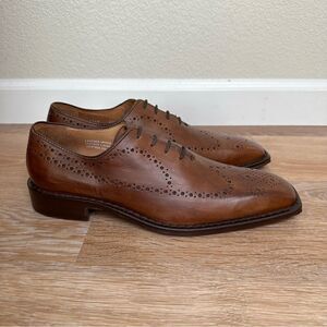 Calzoleria Toscana Brown Genuine Leather Brogue Wingtip Oxford Shoes