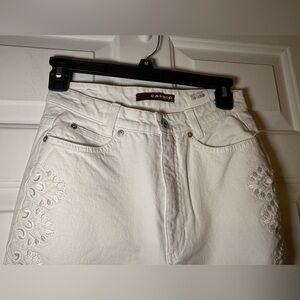 Cambio White Jeans Side Floral Embroidery Straight High Rise Size 6 Feminine