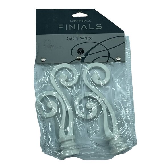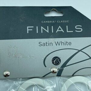Cambria Finials Satin White Ends to Curtain / Drapery Rods and Holdbacks. Brand new in packaging, no flaws, please see pictures for details.