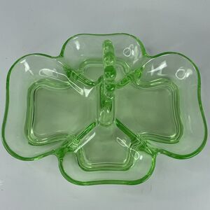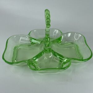 Cambridge 862 Green Uranium Depression Glass 4 Part Relish Tray Center Handle