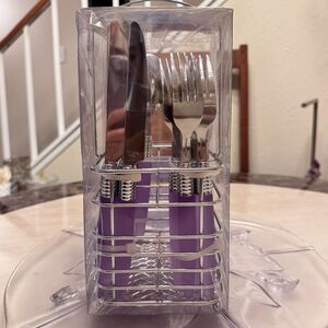 Cambridge Casuals Stainless Flatware Set 16pc Purple Plastic Handle w/Caddy For4