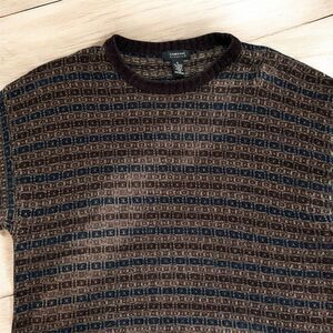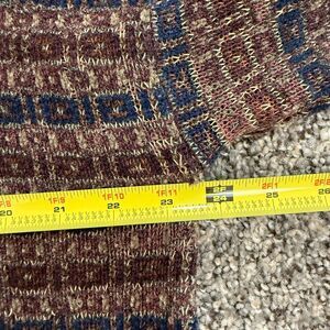 Vintage Cambridge Classics blue, purple, and brown geo geometric chevron pattern medium knit sweater. Crew neck.