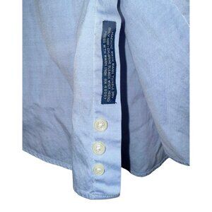 Classic blue button-down shirt perfect for any occasion. Comfortable and stylish, ideal for everyday wear. Has all buttons including extras. Gently used.