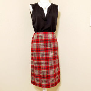 Cambridge Dry Goods Red Plaid Wool Blend Long Skirt