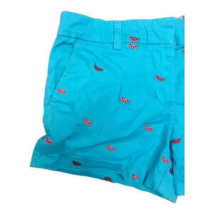 Cambridge Dry Goods Women's 2 Chino Shorts Blue Embroidered Watermelon Design
