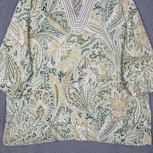 Cambridge Dry Goods Womens Tunic Top Plus Sz 3XL Green Paisley Linen Blend 3/4 Sleeve