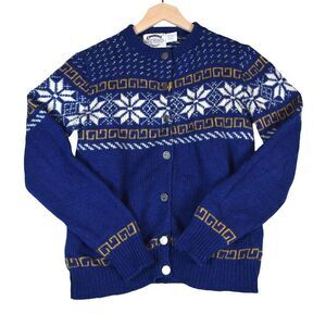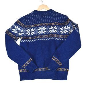 Cambridge Dry Goods Wool Sweater Blue Nordic Fair Isle Pullover Womens Vintage Medium