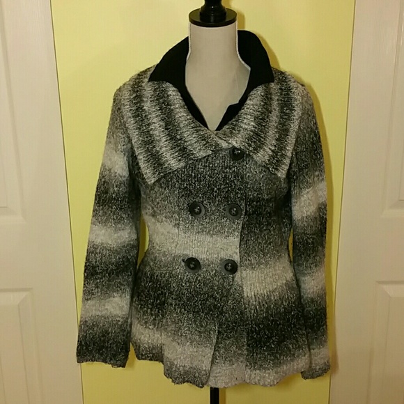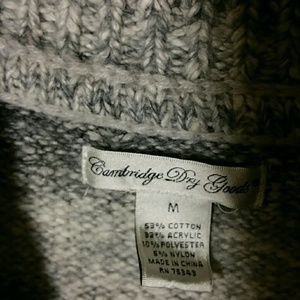 Cambridge Dry Goods Medium is Grey's and white patterned sweater. Three large buttons and oversized collar. Warm sweater. 53% cotton, 10% polyester, 5% nylon. Small is brown and white pattern. Price for one. Perfect condition for both. Last pix show the two different colors beside each other.