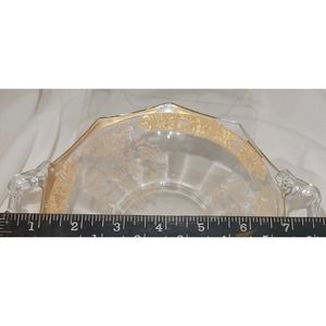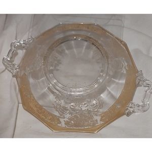 Cambridge Etched Glass Plate Elaine Pattern Brushed Gold Trim Handled