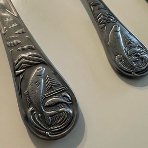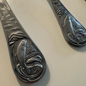 Cambridge Fish/Bass Flatware All Sold Together. Handles Exhibit A Gorgeous Fish Water Design, Photographs Are Of The Exact Silverware You Are Purchasing.
